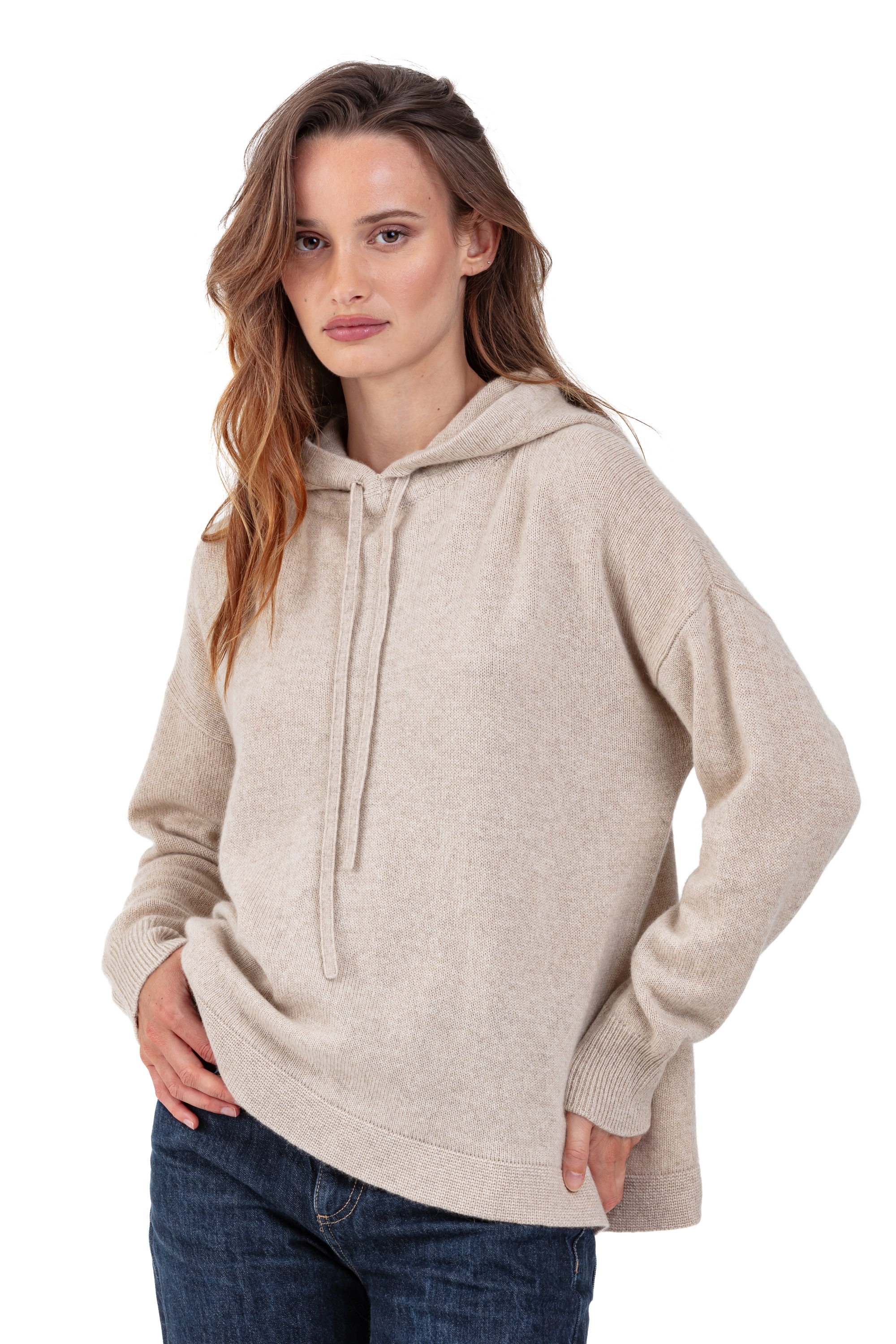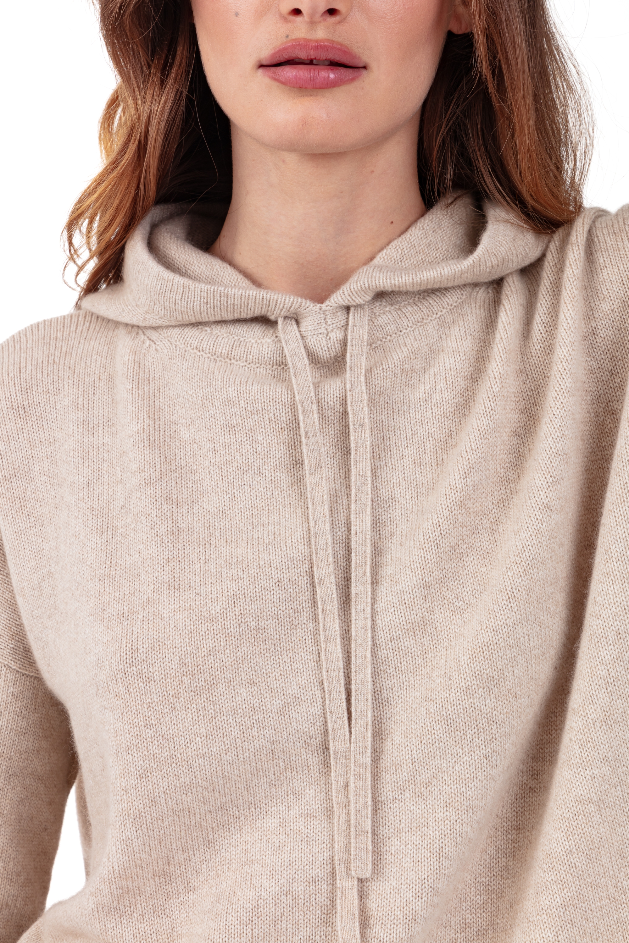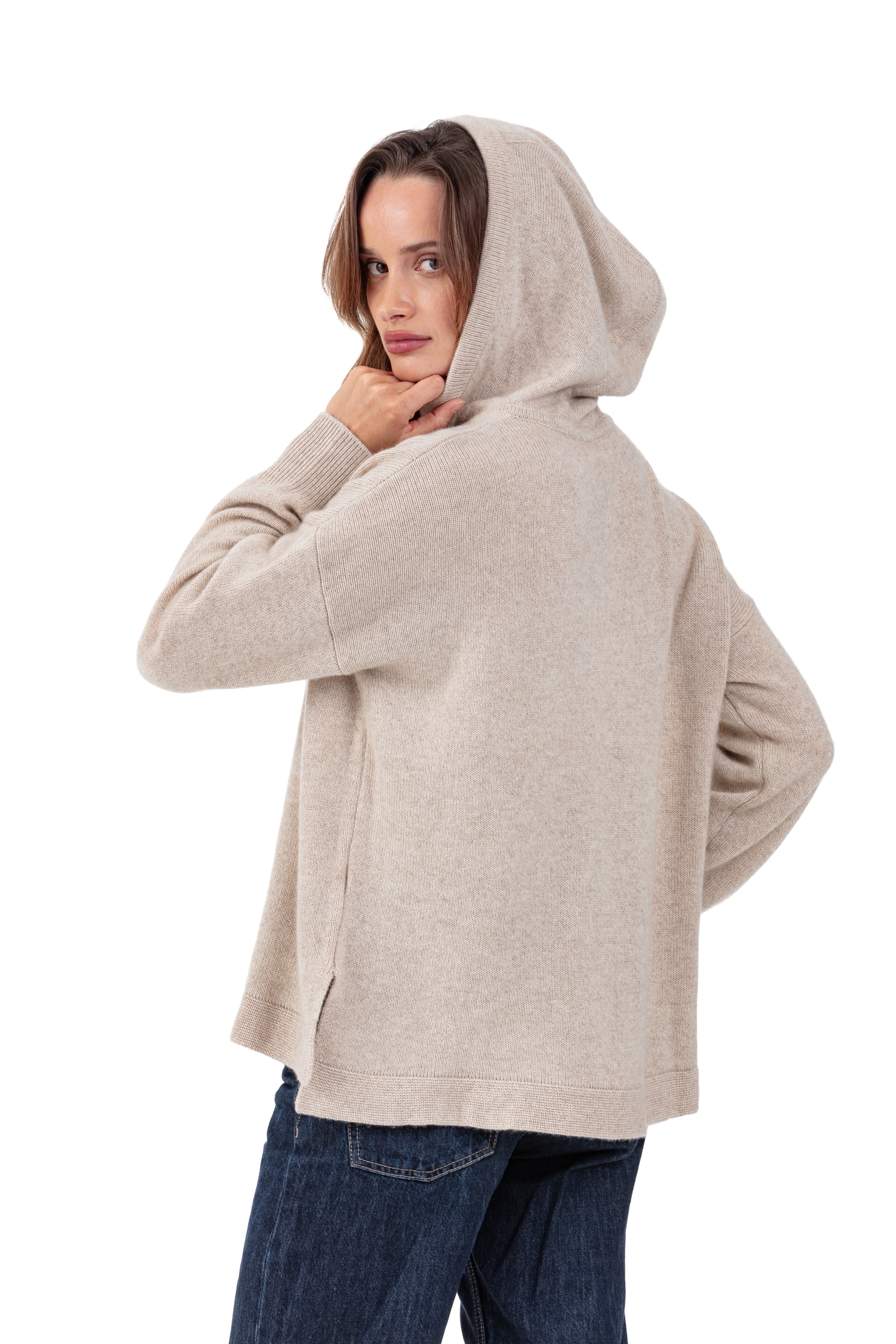 • Deze kasjmier hoodie voor dames verenigt comfort en elegantie en kan zowel met een jeans gedragen worden voor een ontspannen look, als met een broek of rok voor een meer verfijnde, stedelijke stijl. Een modern en veelzijdig stuk, ideaal om het seizoen stijlvol door te komen.