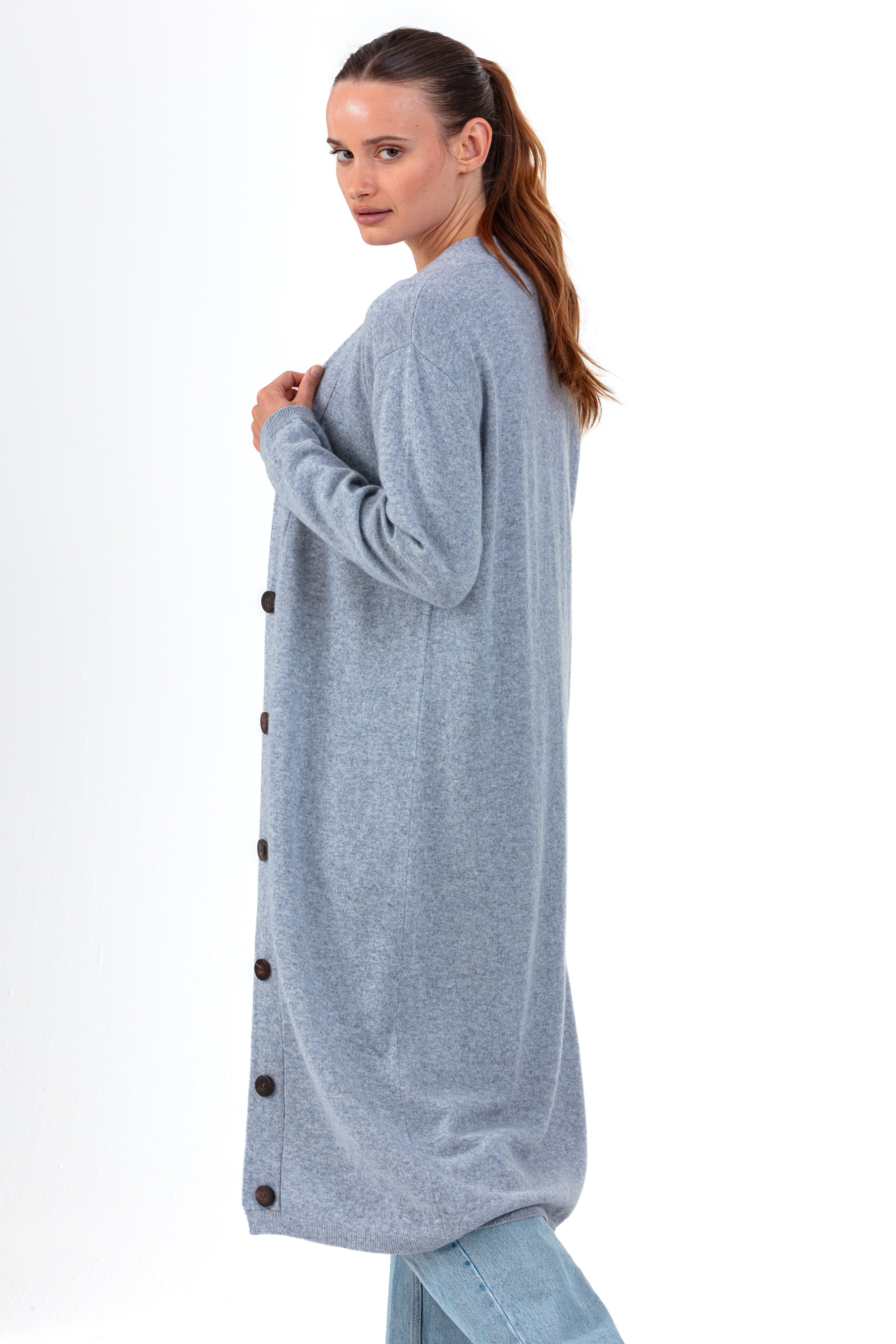 Met zijn royale lengte en klassieke design is het RIMINI vest een echte blikvanger in elke garderobe. Gebreid van 100 % kasjmier 2-draads, dikte 12, heeft het een losse, rechte pasvorm, een diepe V-hals en een elegante stijl die alle lichaamsvormen flatteert.