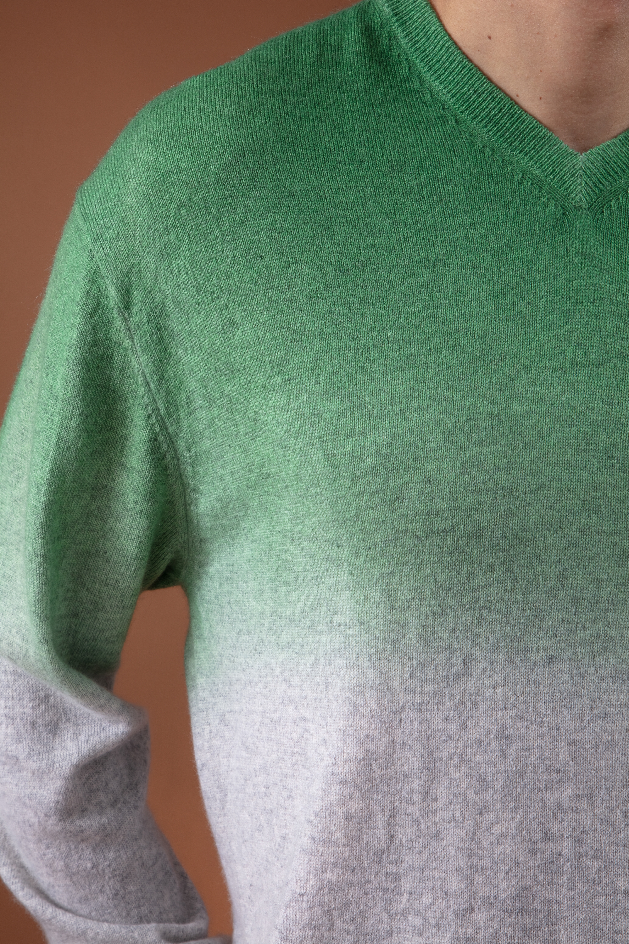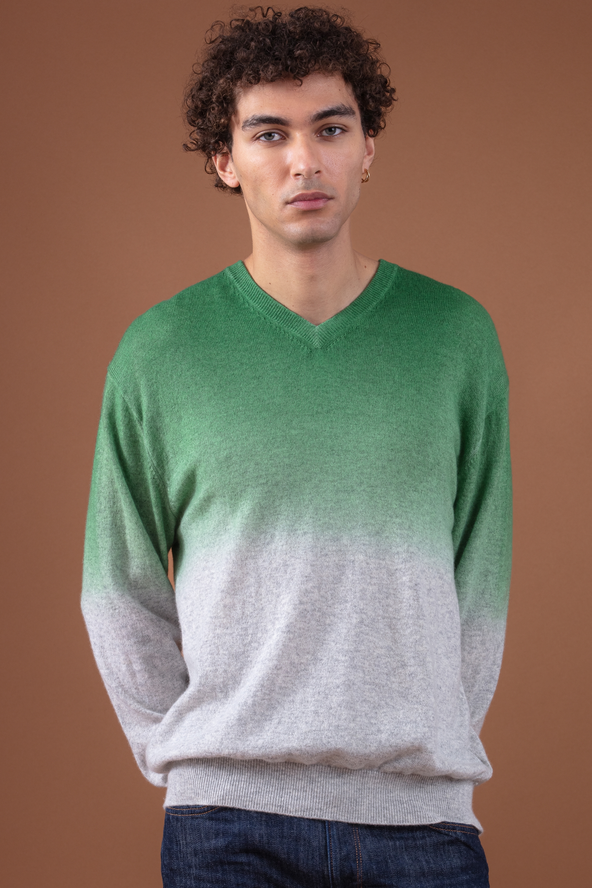 Trui met V-hals en tie & dye-print. Een trendy kasjmier die mag worden gedragen! Ontdek onze andere... Meer weten?