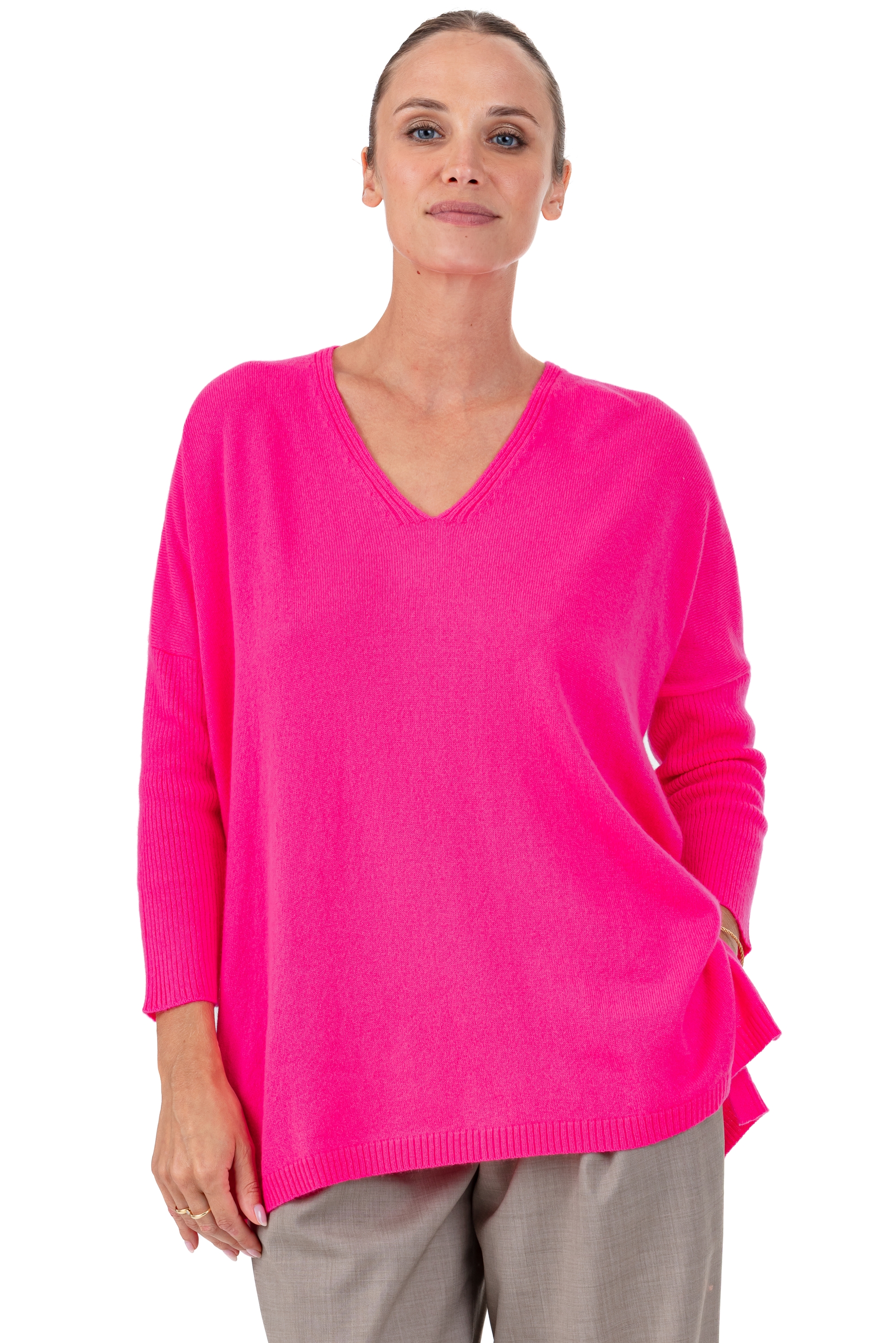 De moderne en comfortabele PIPPA damestrui valt op door zijn oversized snit en diepe V-hals. Gebreid van 100% tweelaags kasjmier, een fijne, soepele brei. Driekwart geribbelde mouwen en een bewerkt kraagdetail, geïnspireerd op het Varsovie-model, voegen originaliteit en elegantie toe.