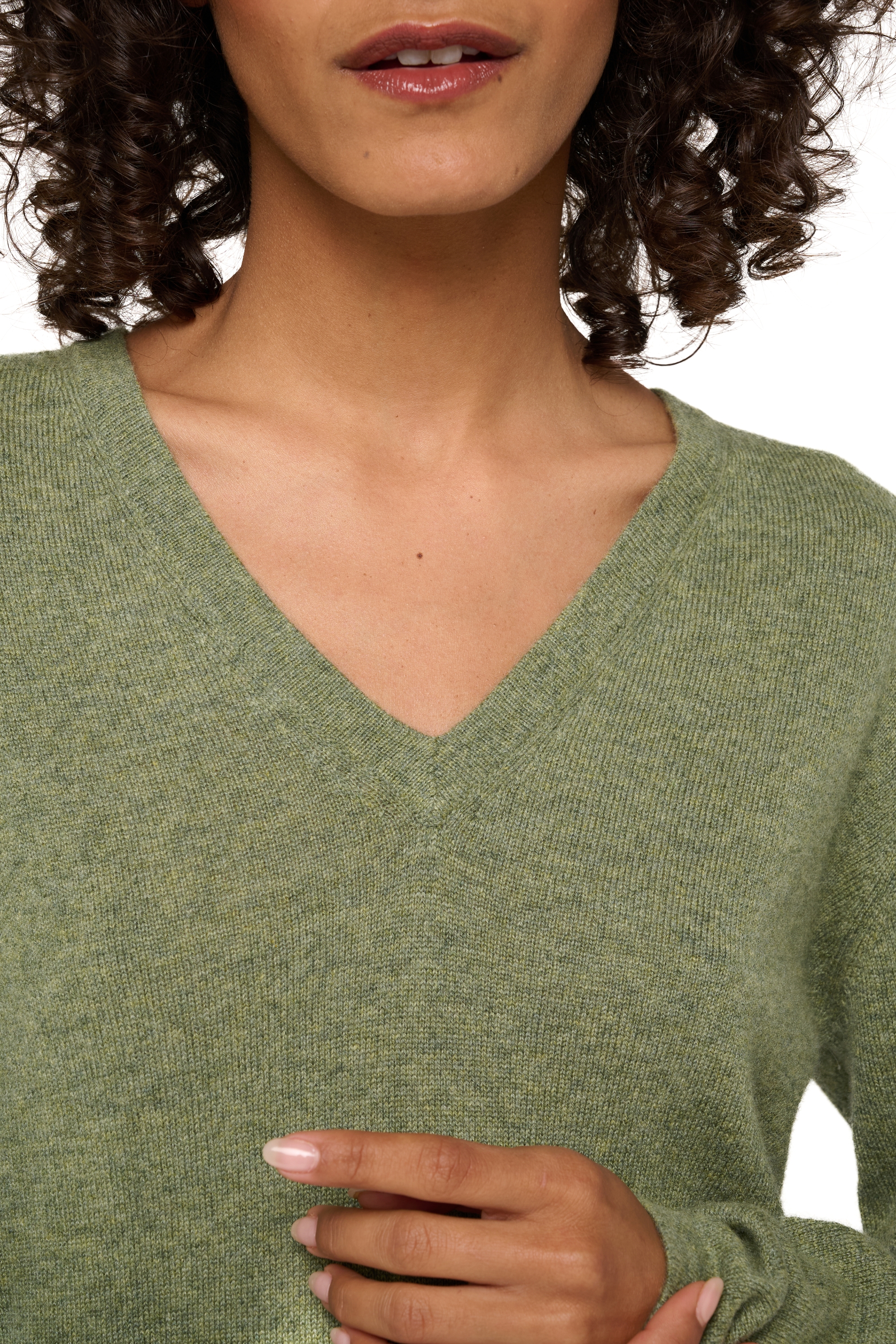 V- hals pullover. Een fijn gebreid model met een omhullende zachtheid.