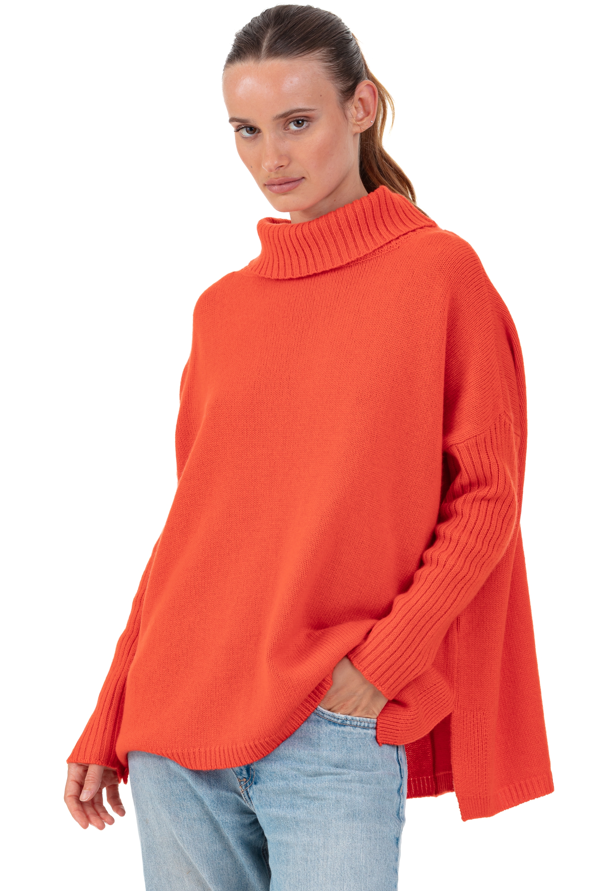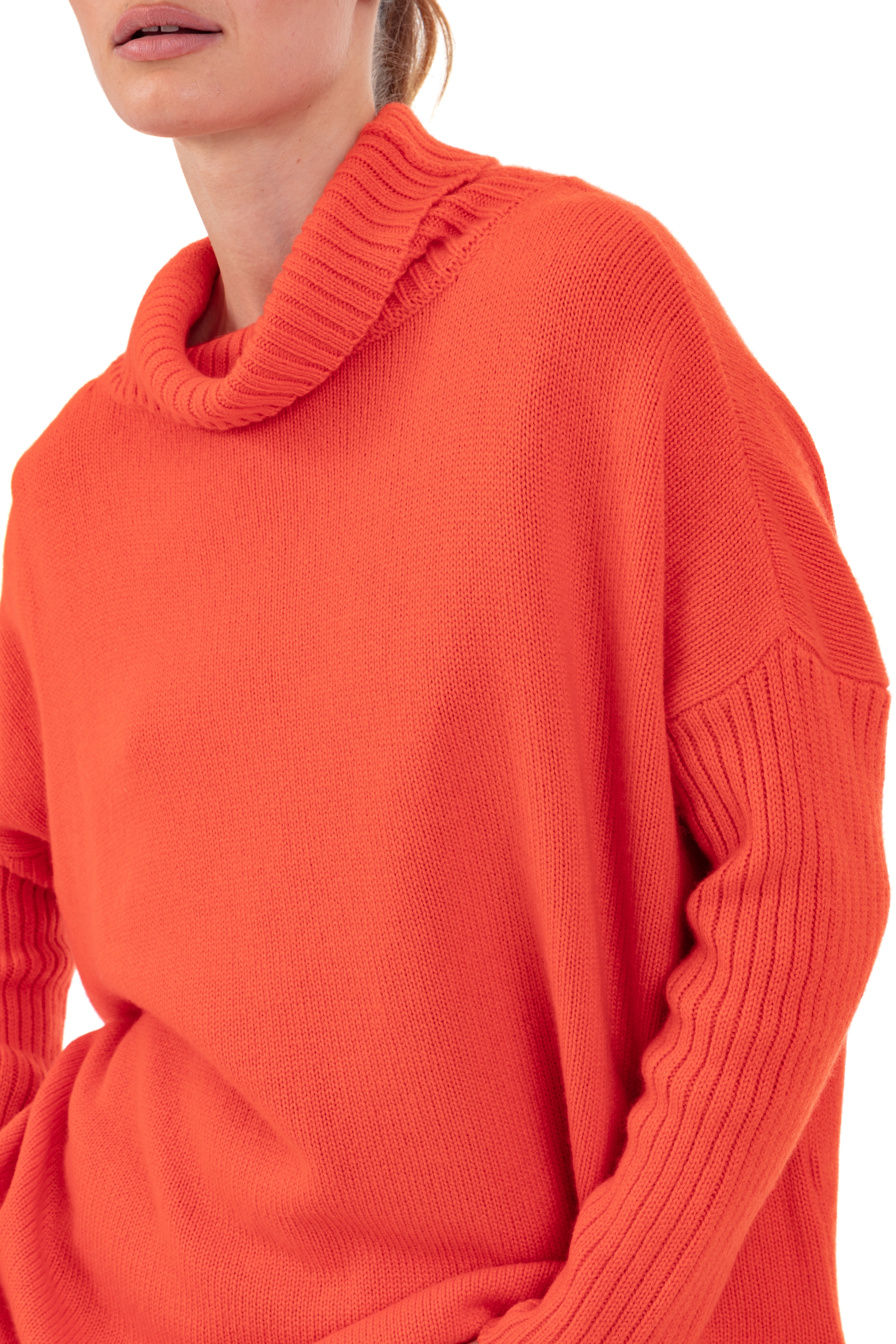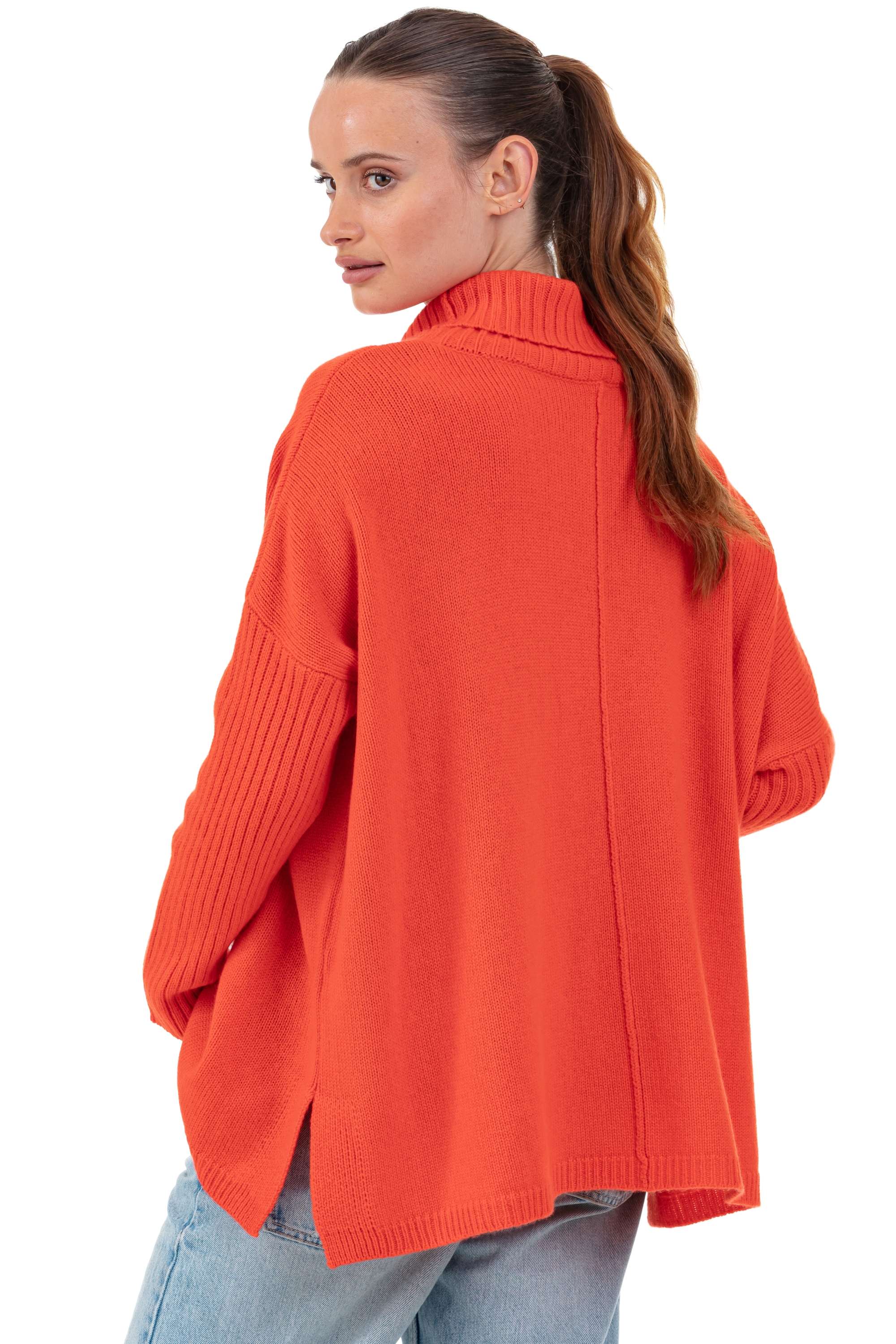 De warme en elegante PAPRIKAE kasjmiertrui voor dames valt op door zijn lange, oversized snit en geribbelde col. Gemaakt van 100% 6-laags kasjmier, valt hij ruim, heeft verlaagde schouders en kleine zijsplitten voor extra comfort en soepelheid. Met 485 g kasjmier is dit een comfortabel maar toch verfijnd kledingstuk.