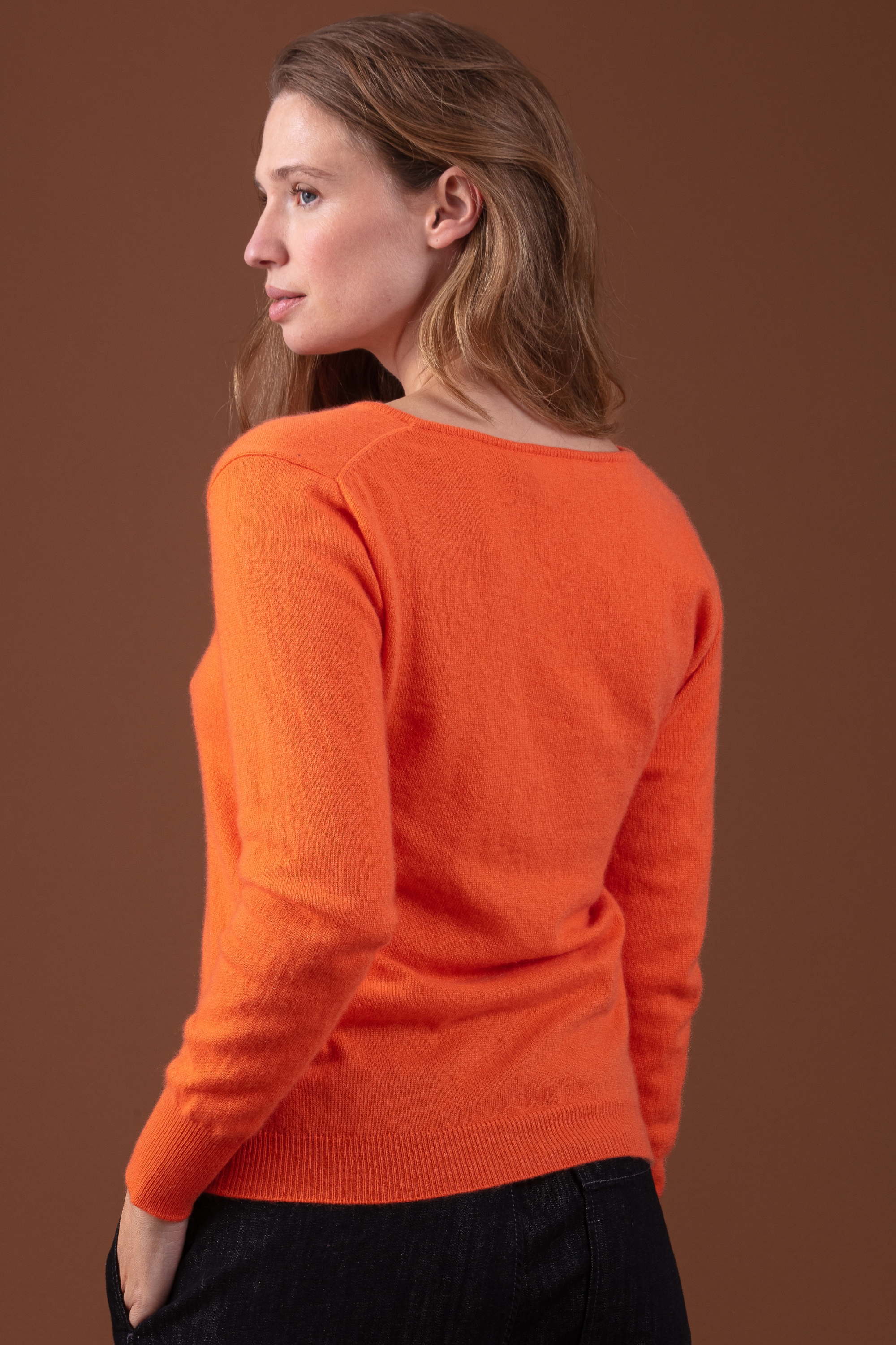 Basic kasjmier trui met V-hals. Wij houden van de wijde halslijn voor een elegante, vrouwelijke look.