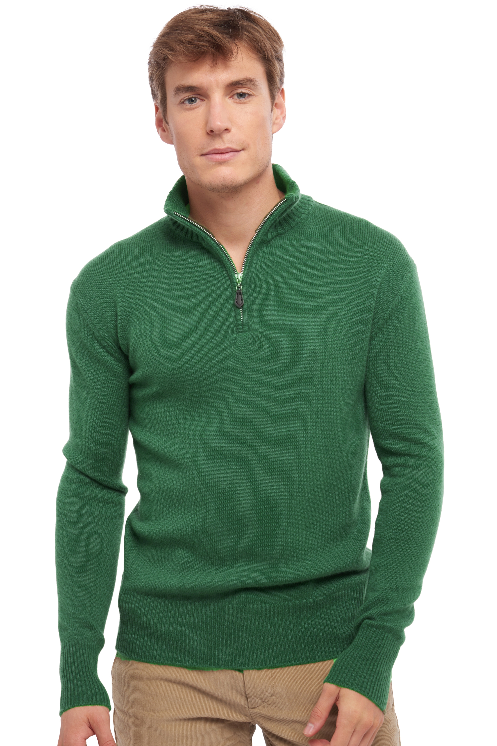 Kol met rits; rits is van staal. Tijdloos, één van onze beste. Deze klassieke snit past iedereen. Kol met twee lagen. Afwerking onderkant en manchetten : 1x1 ribbels van 9 cm.
