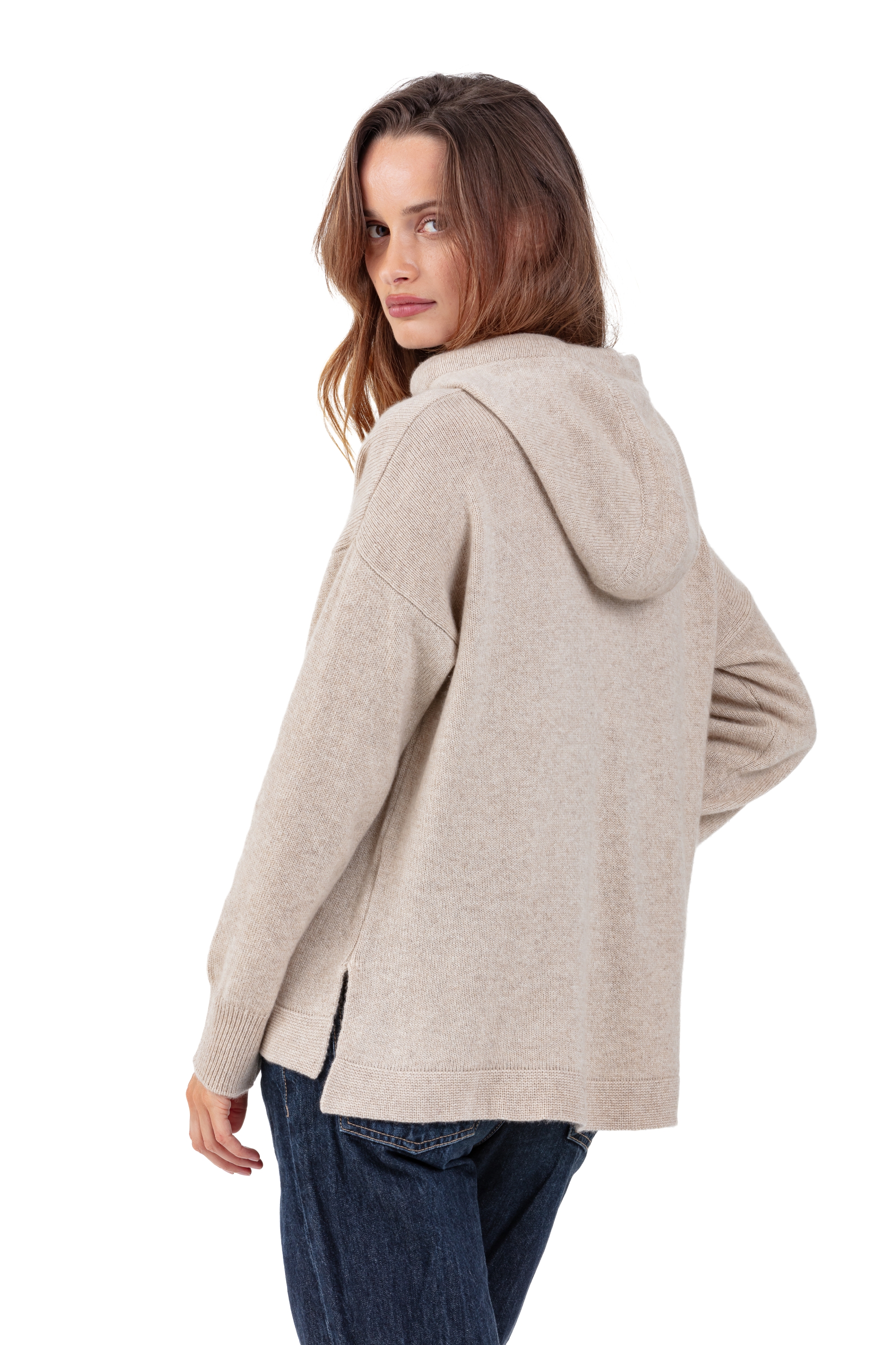 • Deze kasjmier hoodie voor dames verenigt comfort en elegantie en kan zowel met een jeans gedragen worden voor een ontspannen look, als met een broek of rok voor een meer verfijnde, stedelijke stijl. Een modern en veelzijdig stuk, ideaal om het seizoen stijlvol door te komen.