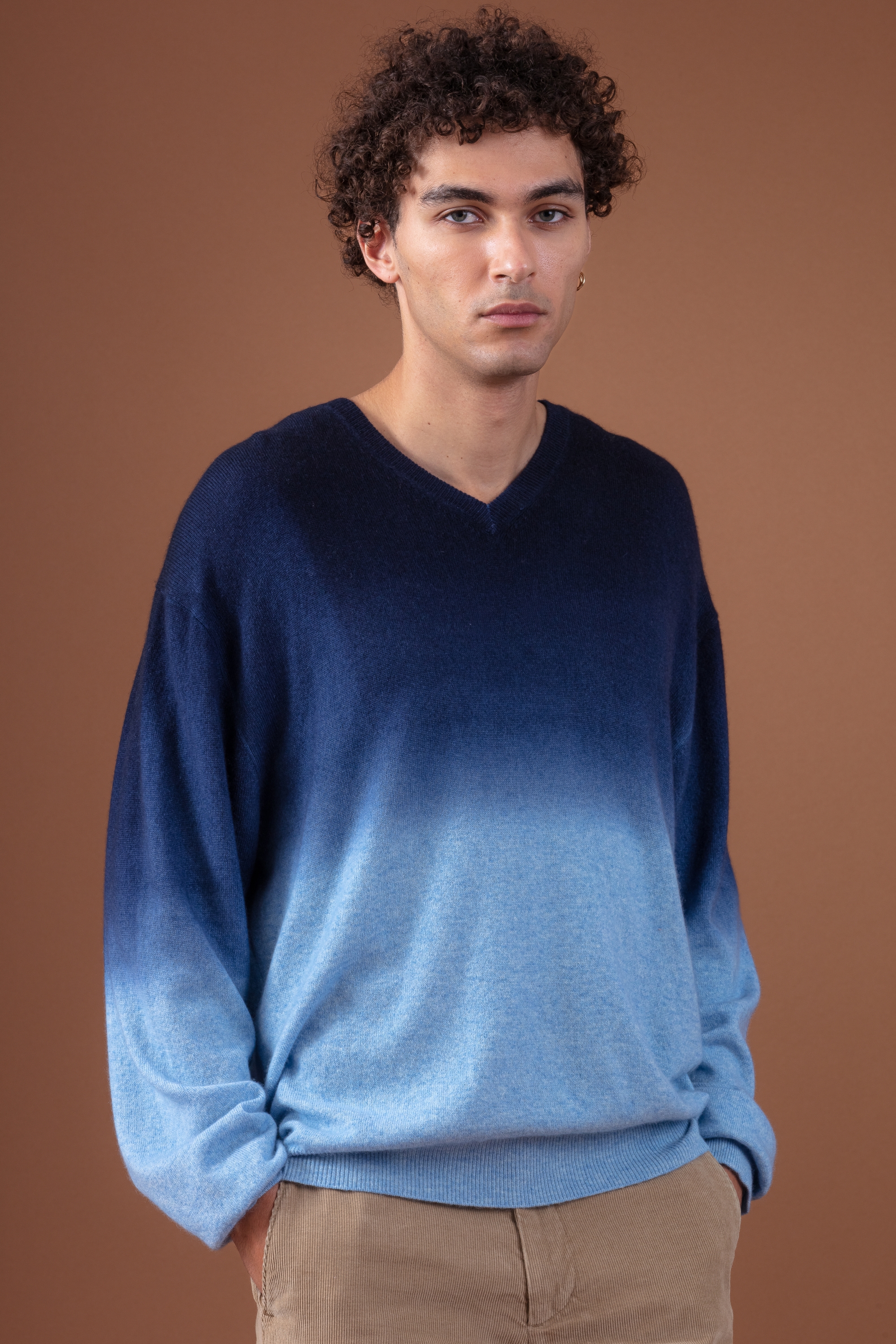 Trui met V-hals en tie & dye-print. Een trendy kasjmier die mag worden gedragen! Ontdek onze andere... Meer weten?