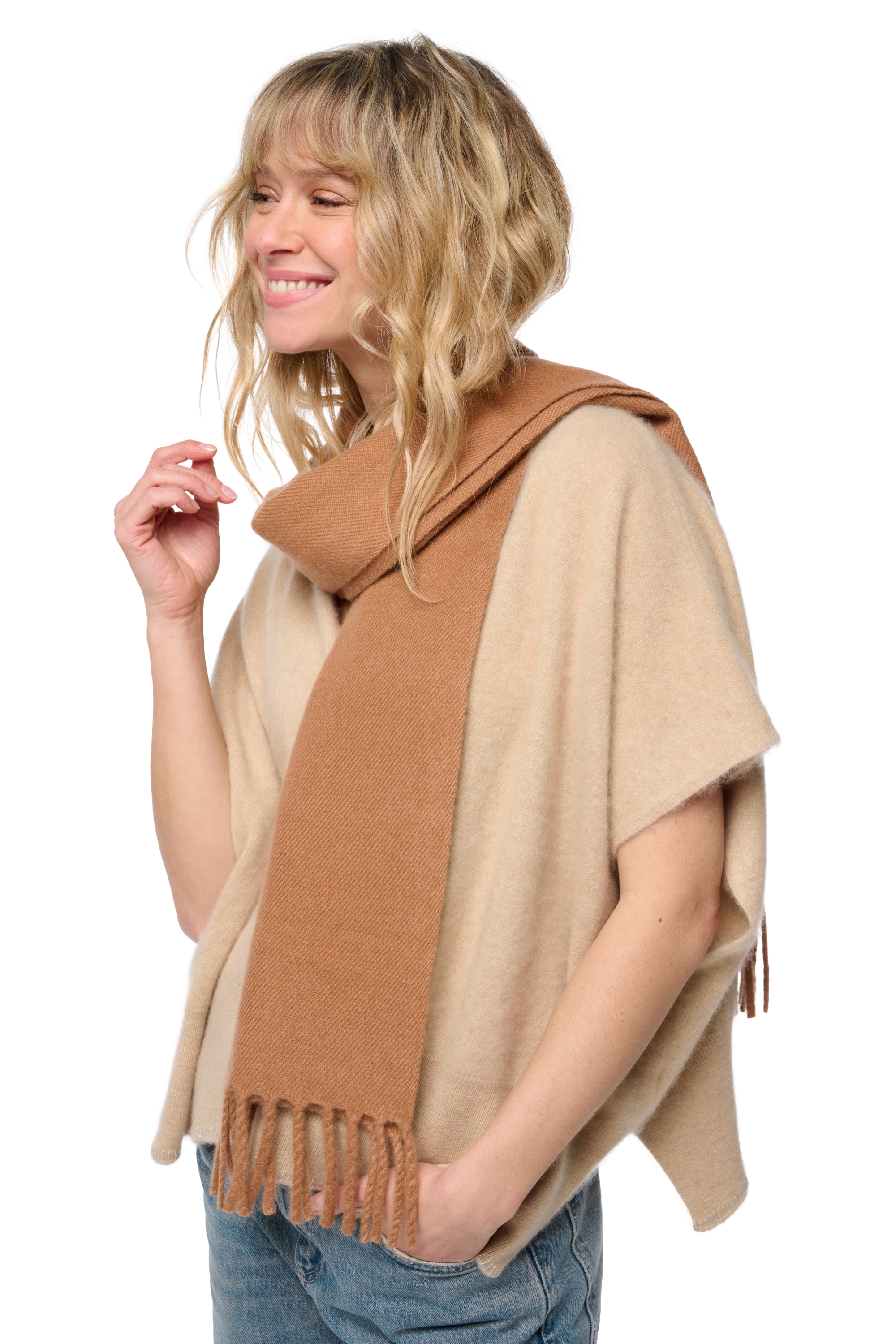Met zorg gebreid van weelderig 6-draads kasjmier, betovert deze sjaal door zijn dichte en zachte textuur. De royale afmetingen (170x35 cm) maken het mogelijk je er comfortabel in te wikkelen, terwijl hij elke outfit een verfijnde uitstraling geeft.