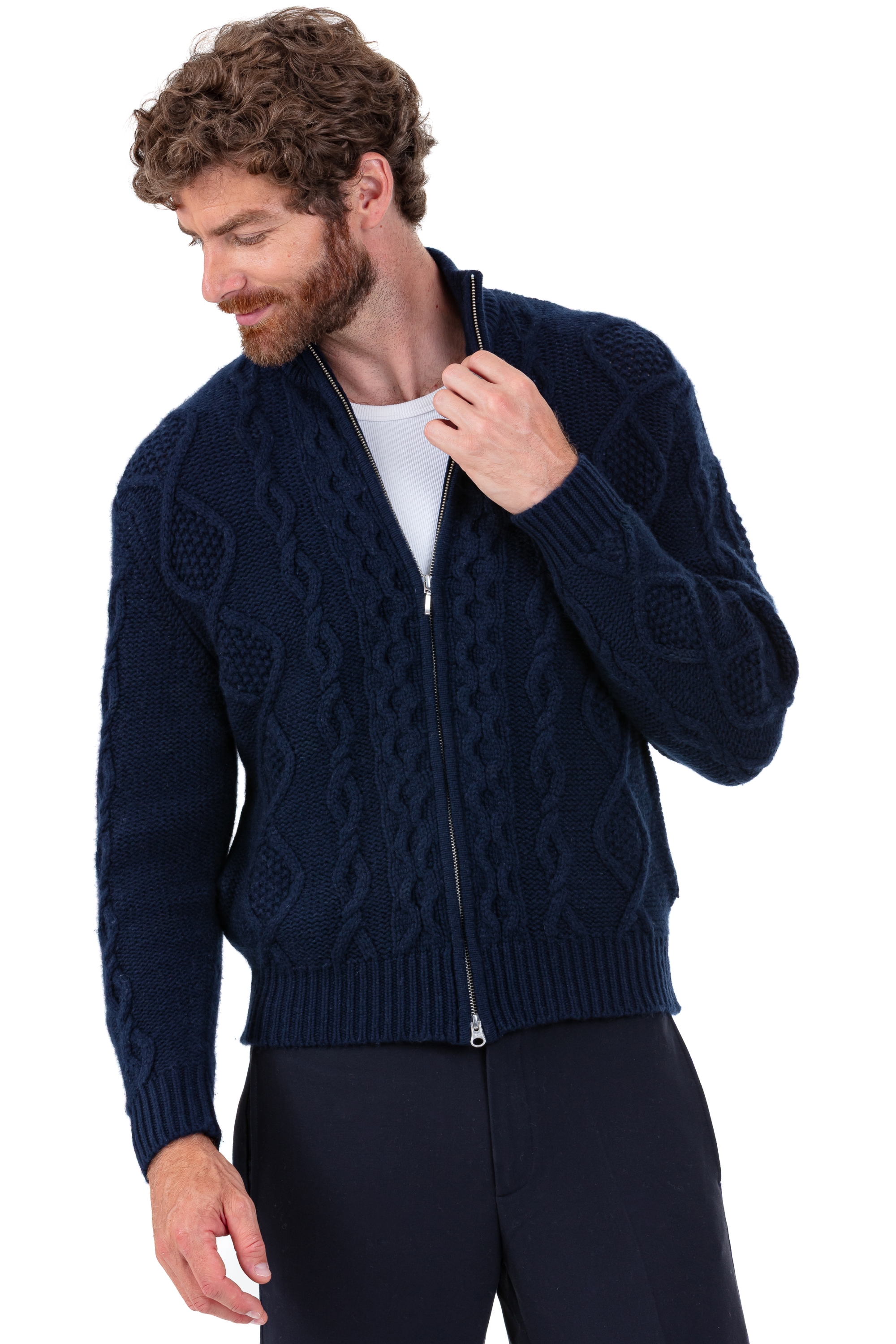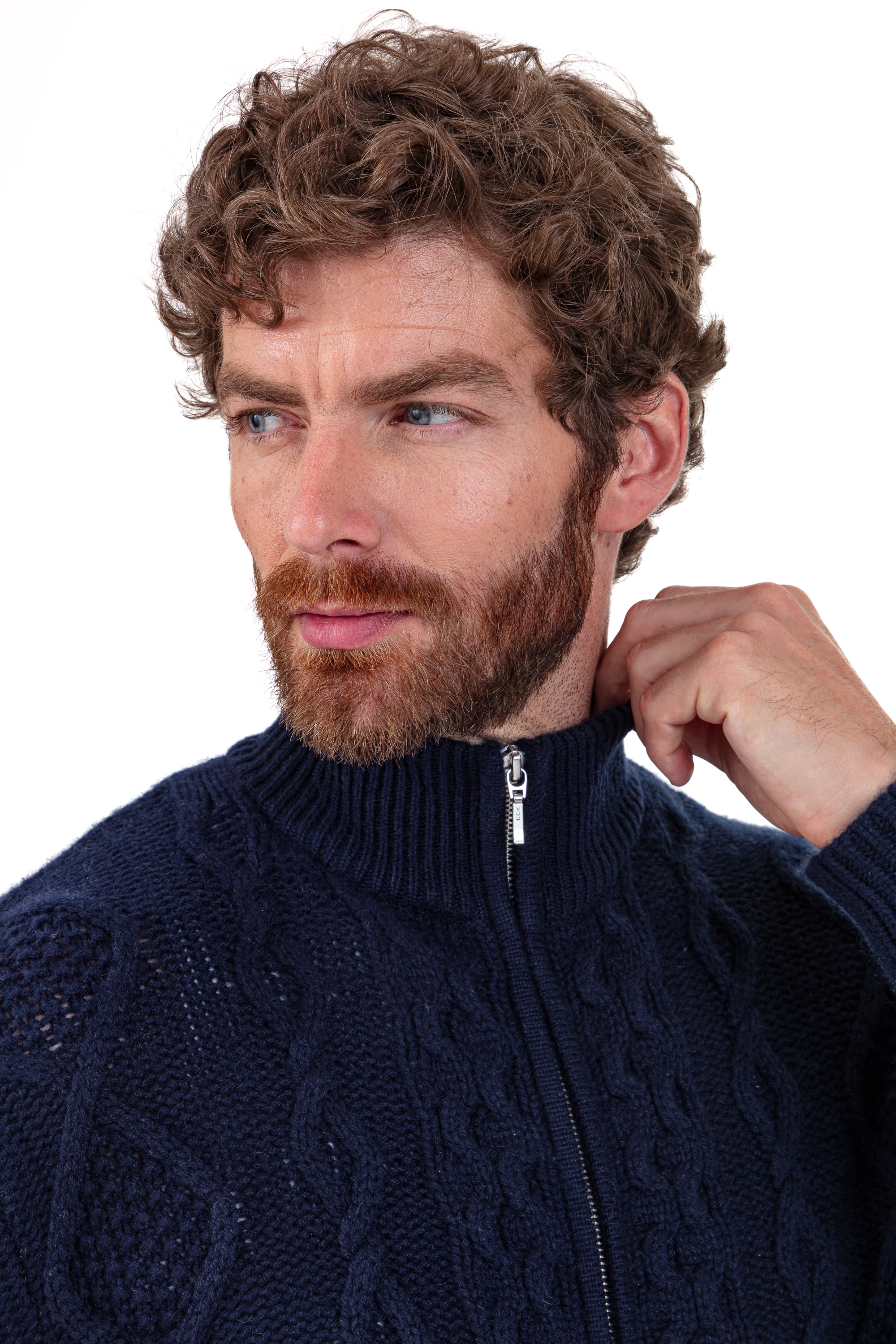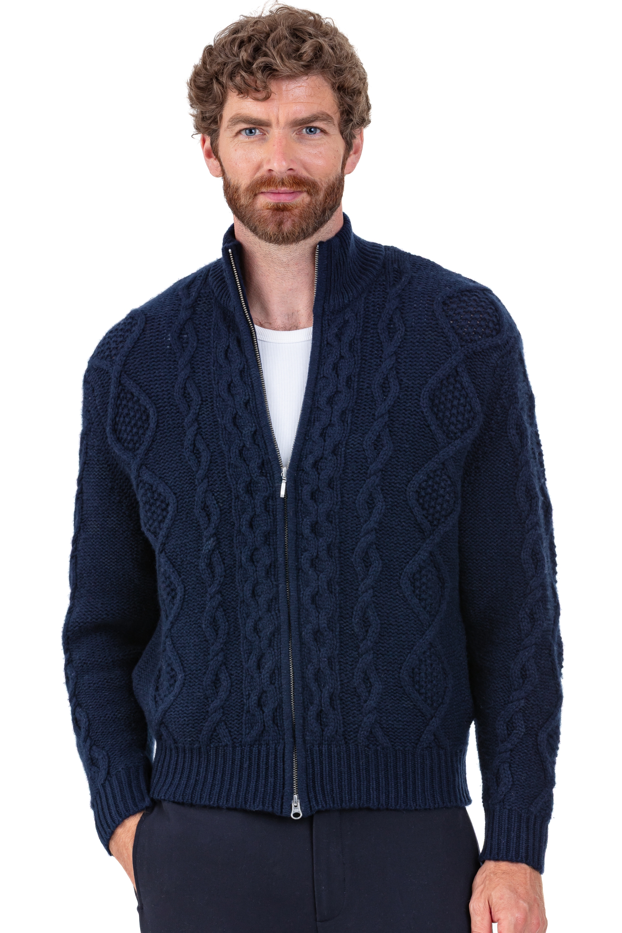 Origineel en verfijnd, de PATMOS herencardigan betovert met zijn kabelbreisel en opstaande kraag. Gebreid van 100% 10-laags kasjmier biedt hij zowel warmte als structuur. De dubbele ritssluiting en zijzakken maken het een praktisch en elegant kledingstuk.