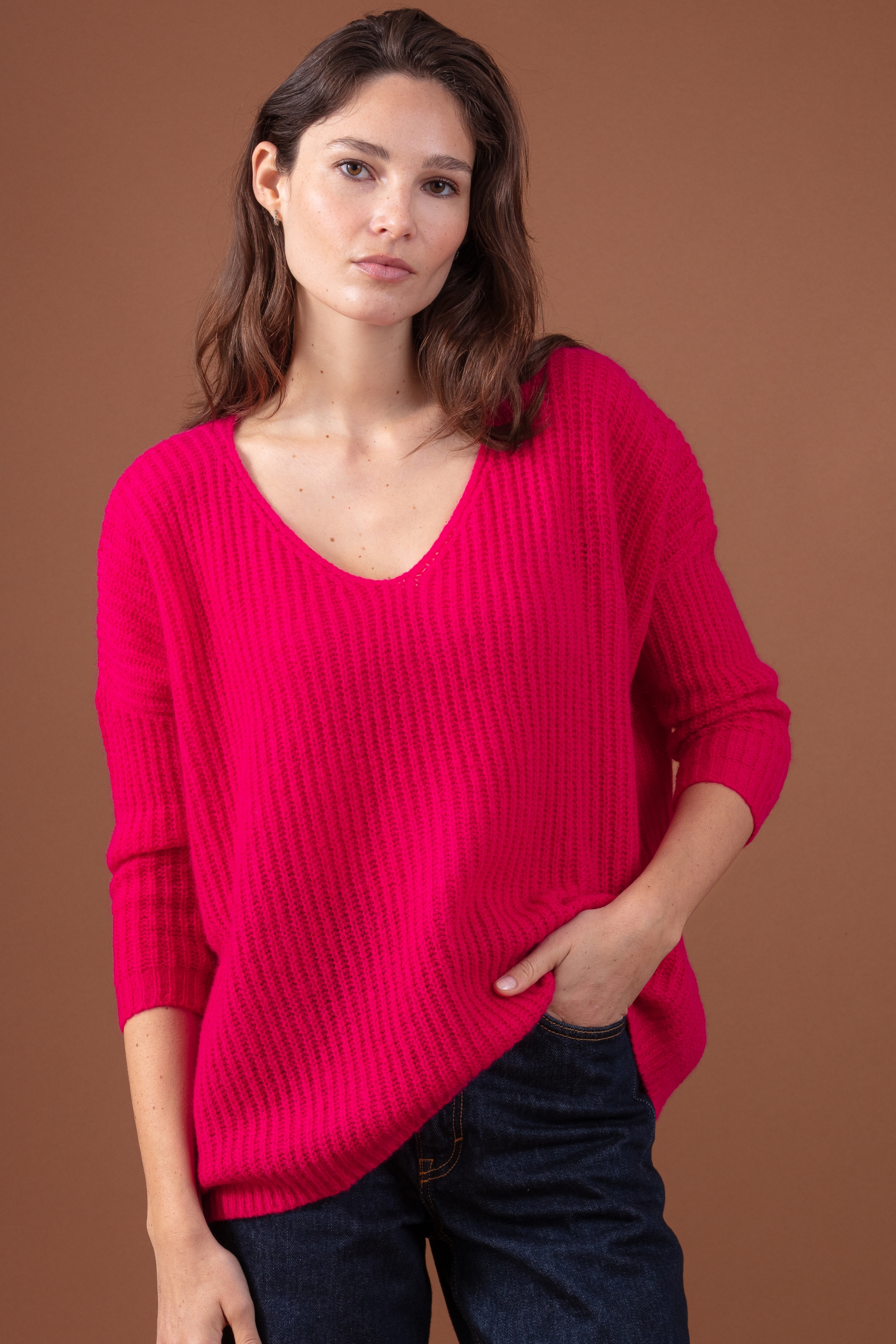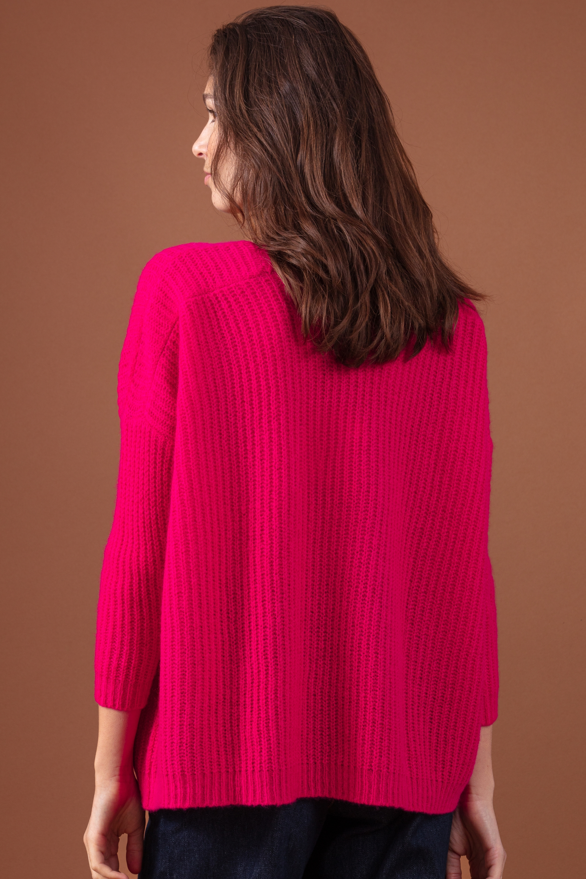 Een ultra-oversized V-hals trui met ribbels.