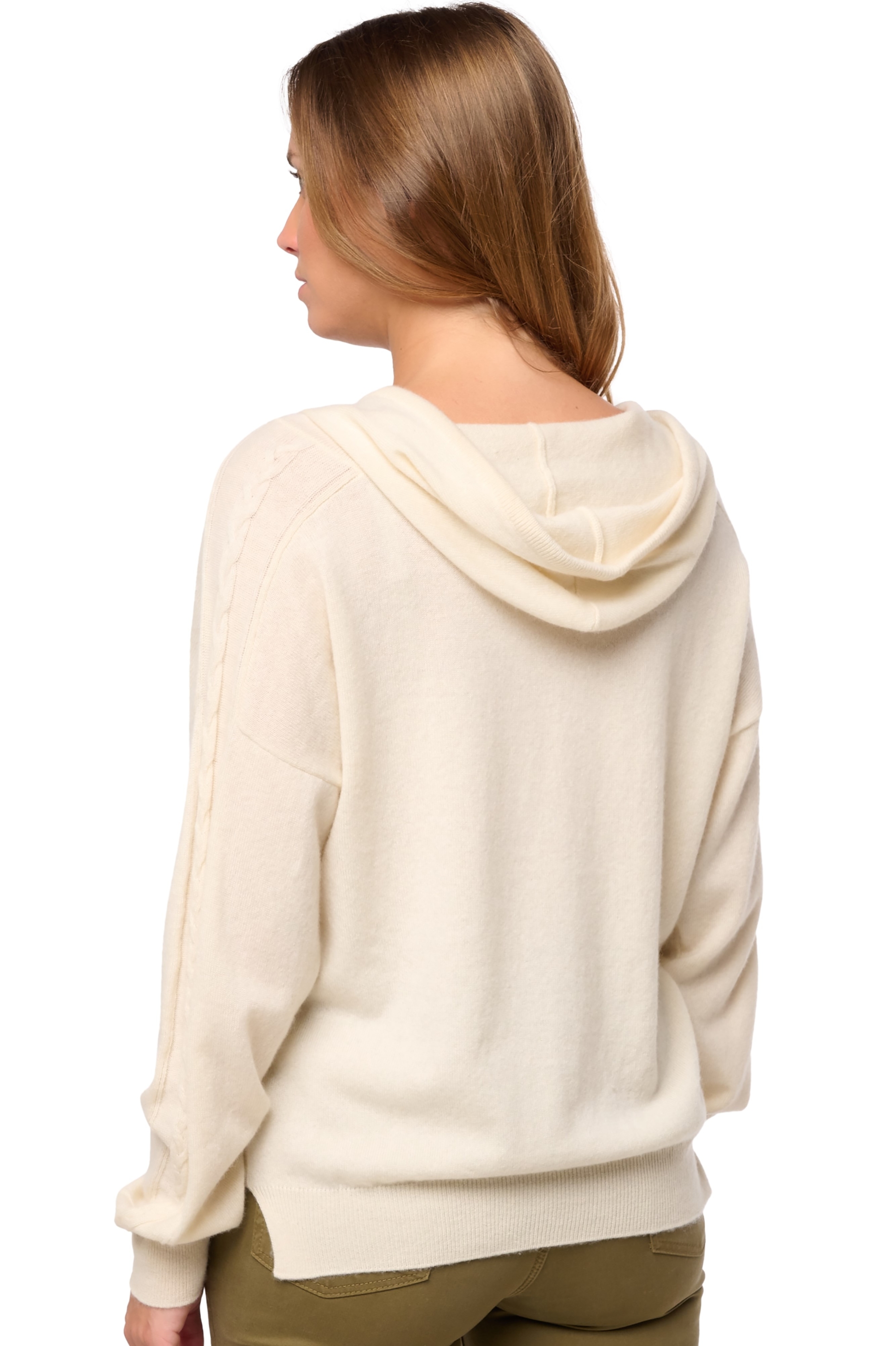 Prachtige hoodie van 100% kasjmier met een decoratief kabeldetail op de mouwen. Draag hem voor een ... Meer weten?